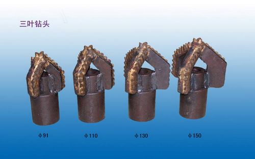 三葉合金鉆頭:Φ75、90、110、130、150、200、220、250、280、300、350、400、450、500...主要分標準型(接頭三葉合金鉆頭、鉆桿三葉合金鉆頭)、導正型(鉆桿三葉合金鉆頭、鉆桿多層三葉合金鉆頭),多種規格和形式,可以根據要求定做。