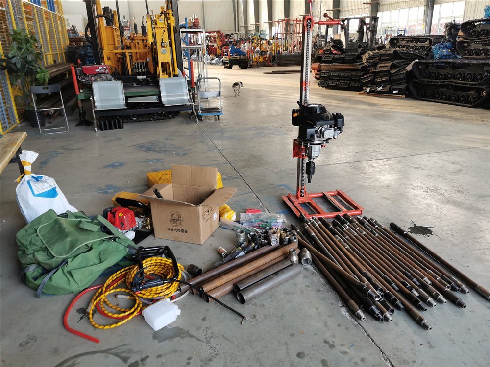 1、取樣鉆機:含汽油發(fā)動(dòng)機、鉆進(jìn)裝置,鏈條塔式支架。